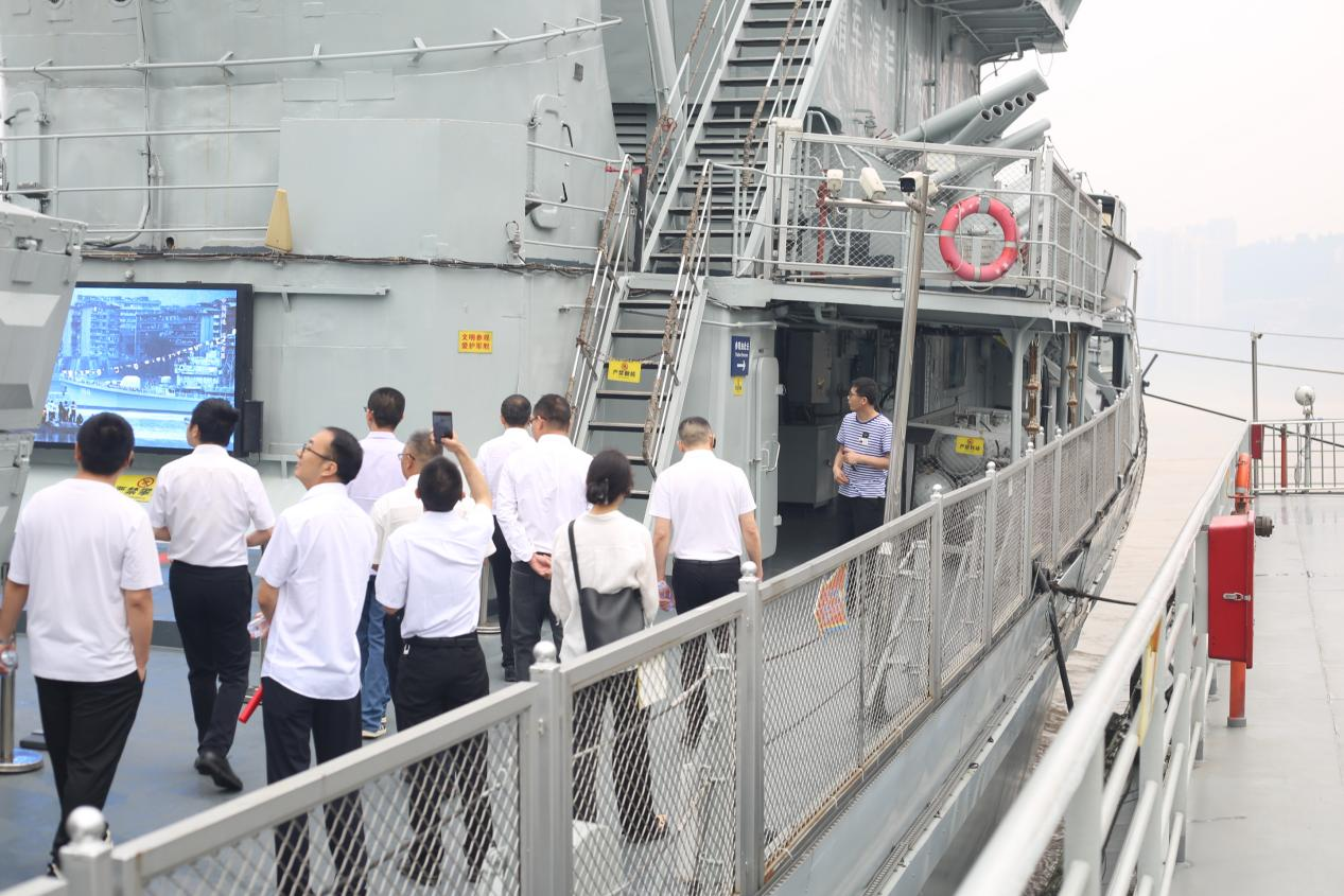 从讲解员娓娓道来的166舰建造和服役故事中,大家了解到,该舰作为051型驱逐舰的最后一艘,它的服役标志着中国海军装备发展的重要阶段。166舰在近30年的服役历程中,执行了多次重大军事、政治任务。从1991年服役于南海舰队,就多次代表中国海军出访国外,并创下了多项历史纪录。在那个年代,中国海军正面临着巨大的挑战,而166舰的加入无疑为海军注入了一股新的力量。166舰既是国之重器,又是和平使者,退役后的166舰从湛江驶入重庆。”